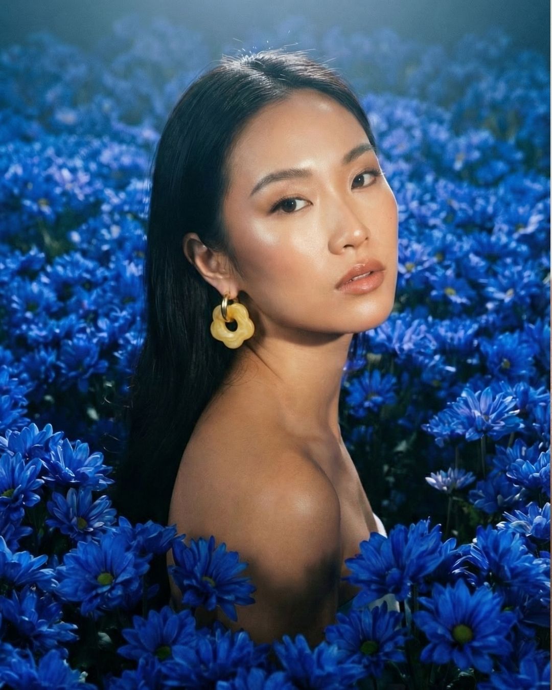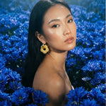 Boucles d’oreilles en résine marbrée, à la forme florale aérienne. Montées sur anneaux en acier inoxydable plaqué or, disponibles en bleu ciel ou jaune solaire.