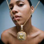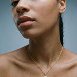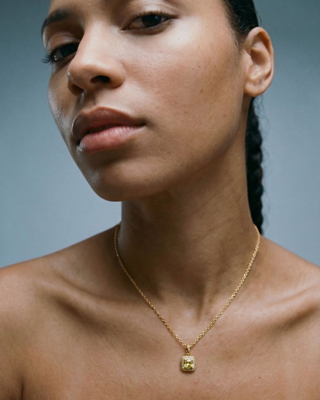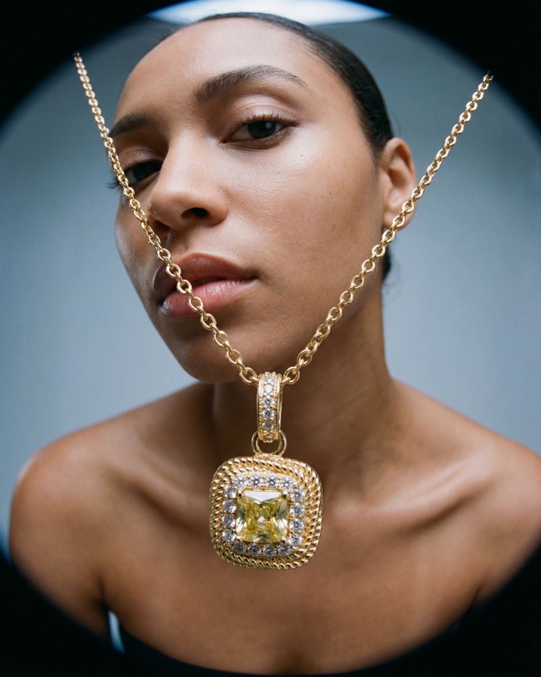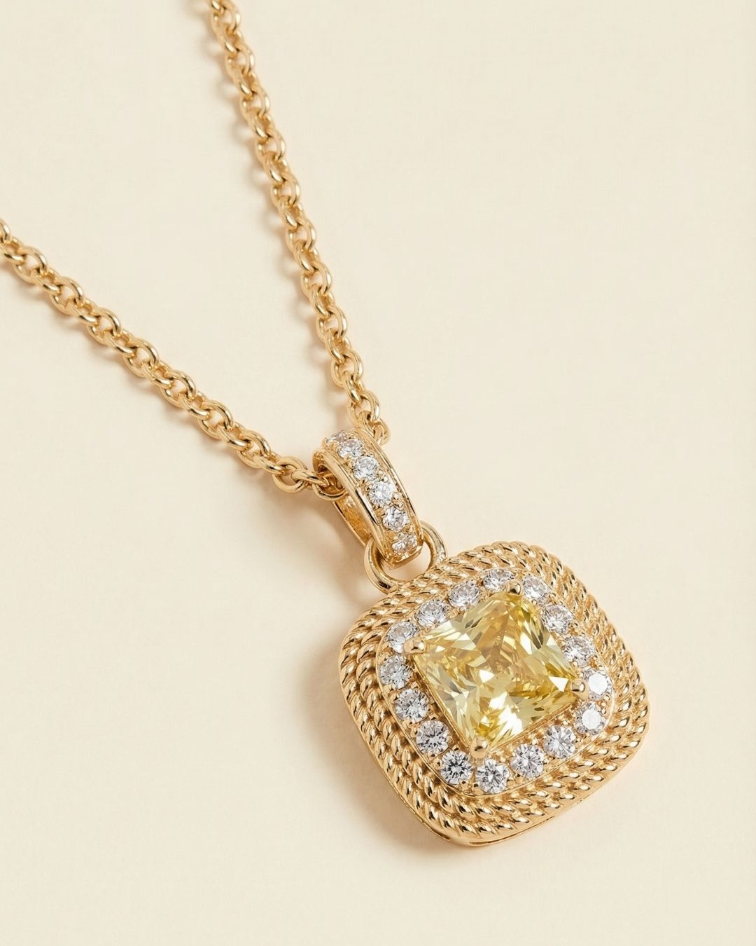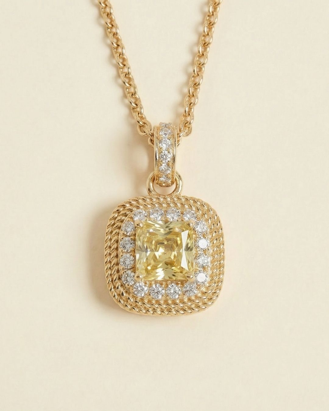 Collier en acier inoxydable plaqué or 18K, orné d’un zircon jaune éclatant. Chic, raffiné et lumineux.